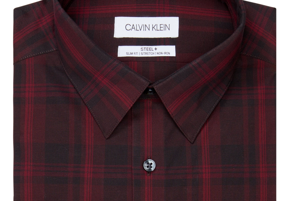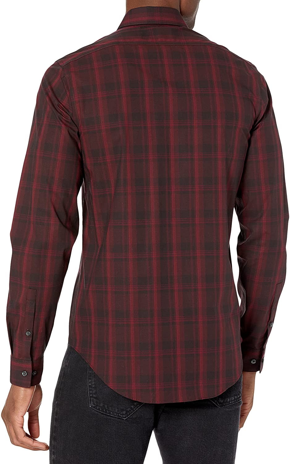 Calvin Klein Mens Dress Shirt Non Iron Stretch Slim Fit Check 17 Neck 32-33 Sleeve Burgundy Multi