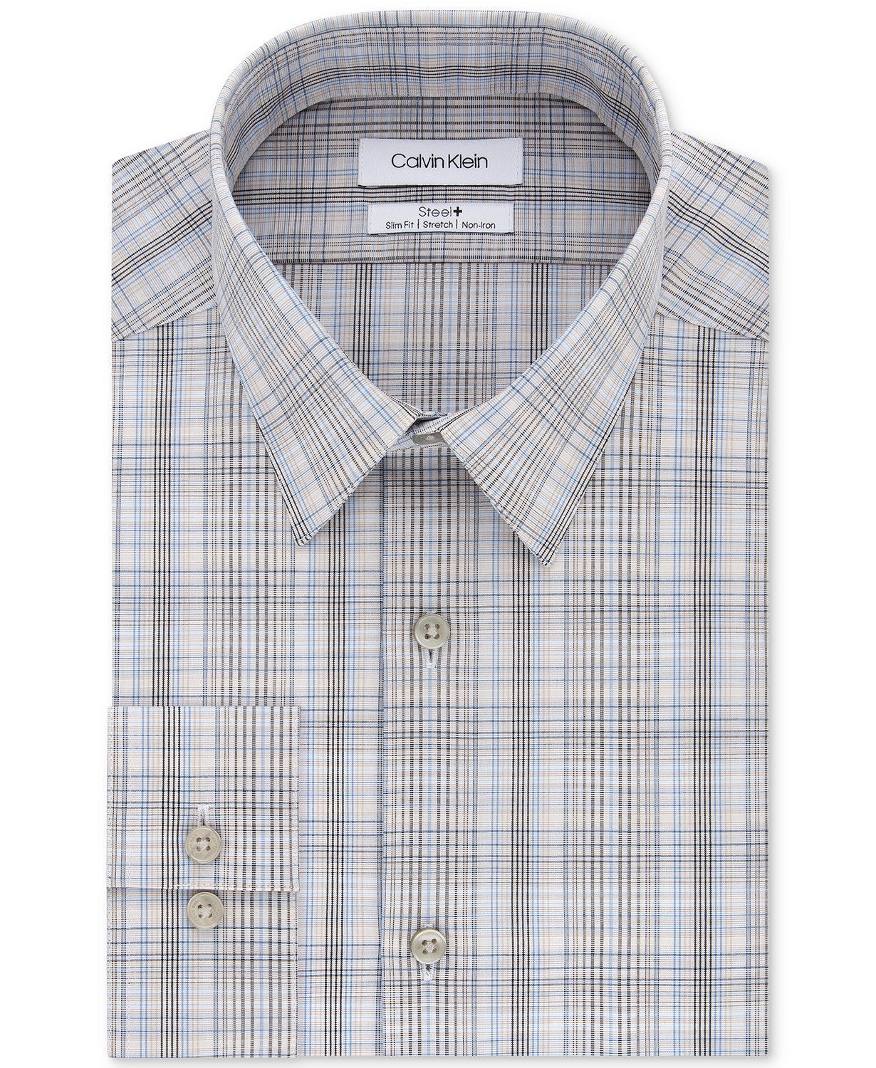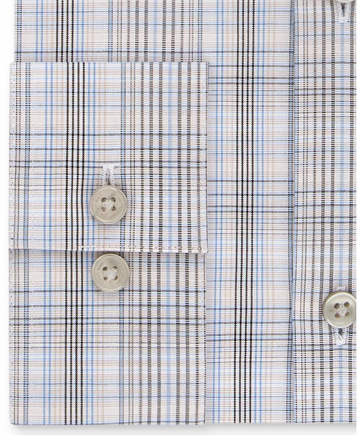 Calvin Klein Men's Slim-Fit Stretch Performance Plaid Dress Shirt Beige Size 15x34-35