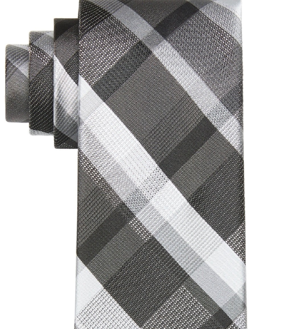 Give your polished look a modern makeover with the contemporary plaid showcased on this slim tie from Calvin Klein.| Slim design| 3 wide| Plaid pattern| | Silk/polyester| Dry clean