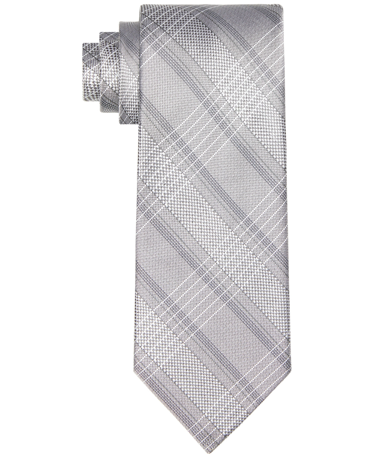 Calvin Klein Men's Slim Plaid Tie Gray Size Regular