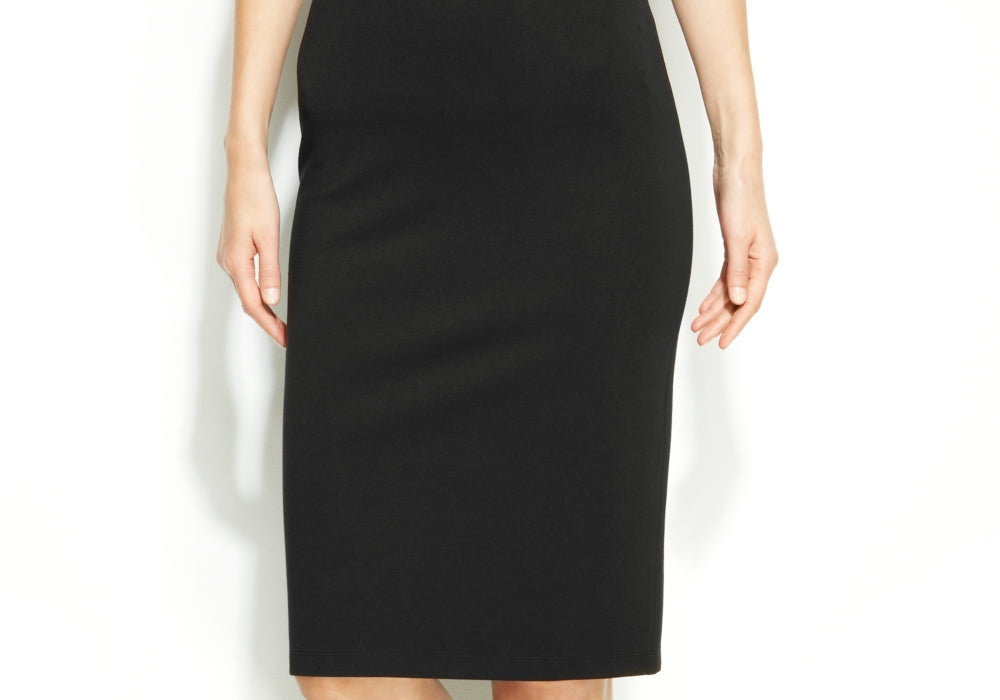 A wide waistband enhances your hourglass shape when you wear this flattering pencil skirt by Calvin Klein| a season-to-season favorite with endless styling potential!| Pull-on styling; elastic panel at waist| Imported| Unlined| | Connect with a stylist & get free expert advice online or in stores for your wardrobe