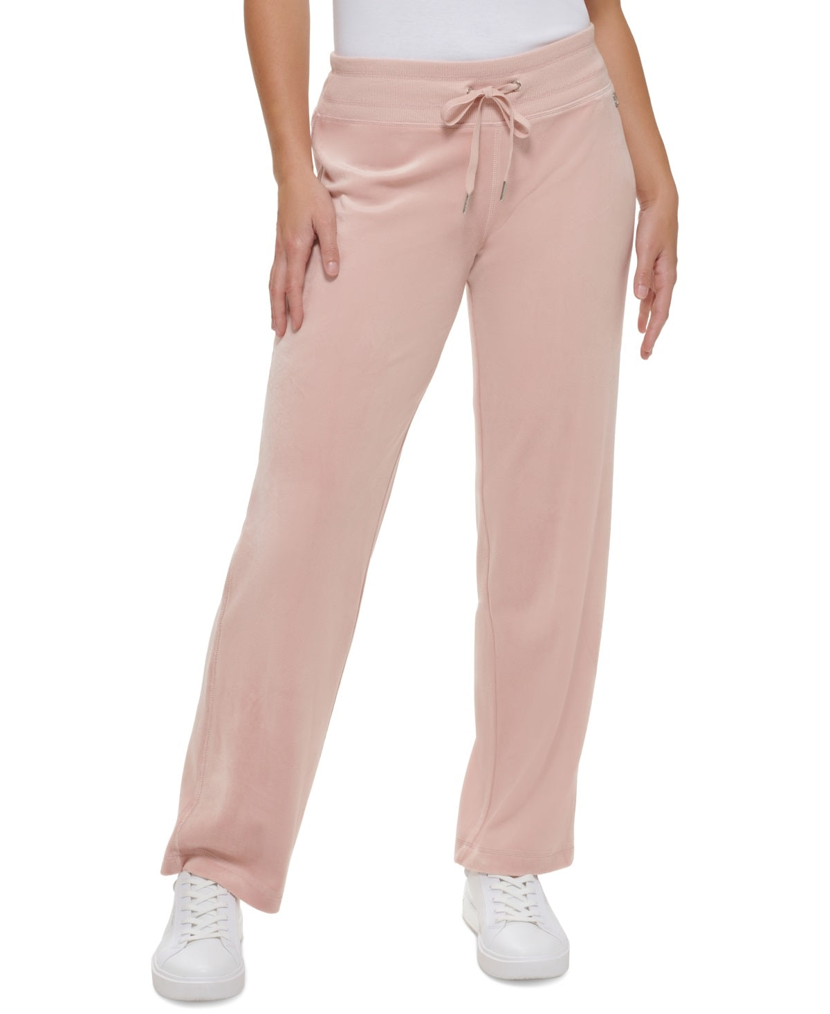 Cozy velour levels up the comfy styling of Calvin Klein's drawstring waist pants.| Ribbed waistband with drawstring| Imported| | Size & Fit| | Petite Designed to fit and flatter 5'4 and under frame