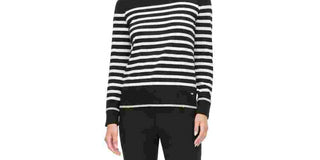 Calvin Klein Women's Striped Long Sleeve Jewel Neck Top Black Size X-Large