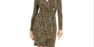Calvin Klein Women's Metallic Wrap Dress Gold Size 10 Petite