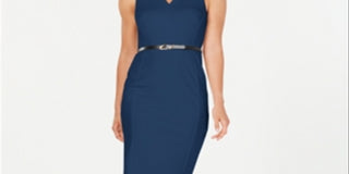 Calvin Klein Women's Sleeveless Below the Knee Sheath Dress Blue Size 8 Petite