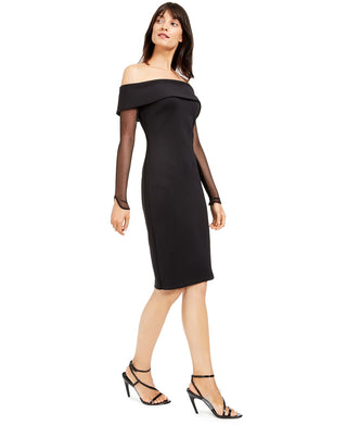 Calvin Klein Women's Off the Shoulder Illusion Sleeve Dress Black Size 12