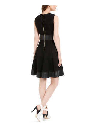Calvin Klein Women's Sleeveless Jewel Neck Above the Knee Fit Flare Wear to Work Dress Black Size 6 Petite