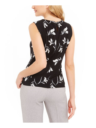 Calvin Klein Women's Floral Sleeveless Jewel Neck Blouse Wear to Work Top Black Size Petite Medium