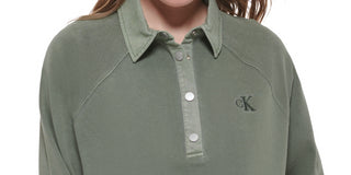Calvin Klein Women's Cotton Polo Sweatshirt Green Size X-Large