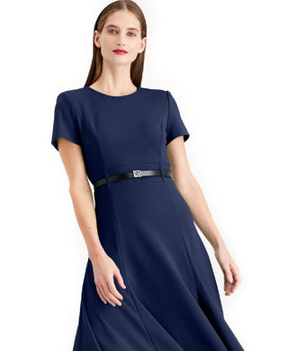 Calvin Klein Women's Belted A Line Midi Dress Blue Size 4