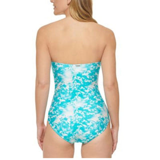 Calvin Klein Women's Printed V-Notch Bandeau One-Piece Swimsuit Blue Size 12