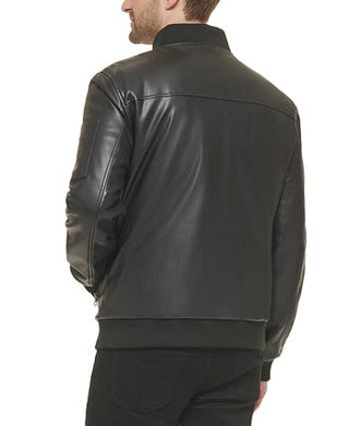 Calvin Klein Men's Faux Leather Bomber Jacket Black Size Large