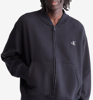 Calvin Klein Men's Relaxed Fit Archive Logo Fleece Bomber Jacket Black Size Large