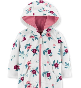 Carter's Girls' Jumpsuits Print Floral Fleece Hooded Playsuit White Size 24 Months