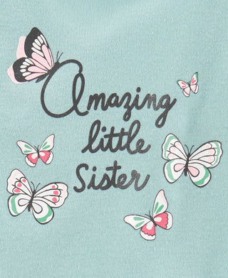 Carter's Girl's 'Little Sister' Ruffle Bodysuit & Floral Leggings Teal Size 12 Months