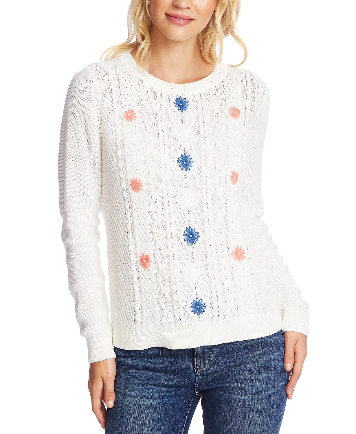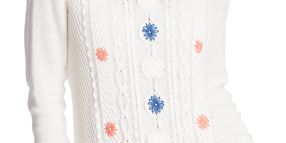 Appr0X. length: 23-1/2"|Crewneck|Cable knit and embroidery at front|100% cotton|Hand wash|Imported