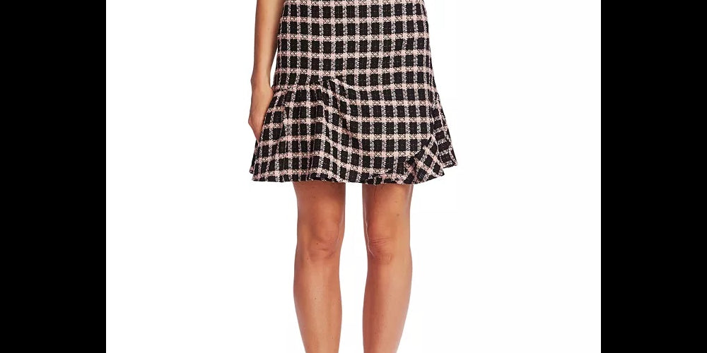 CeCe Women's Grid Tweed Asmymmetrical Ruffle Skirt Black Gray Size 14