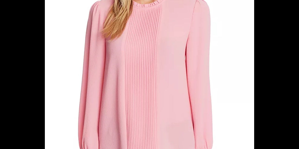 Approx. 24-1/2" long|Ruffled crew neckline; back button closure with keyhole opening|Pintuck pleats at front|Puffed shoulders; smocked cuffs|Lined at front|Polyester/elastane|Machine washable