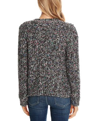 Cece Women's Long Sleeve Multicolor Crew Neck Sweater Rich Black Grey Size Medium