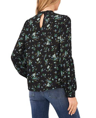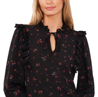 CeCe Women's Floral Print Ruffle Blouse Black Size Medium