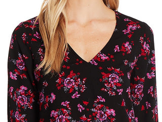 Cece Women's Romantic Mystic Floral Tie Sleeve Top Black Size Small
