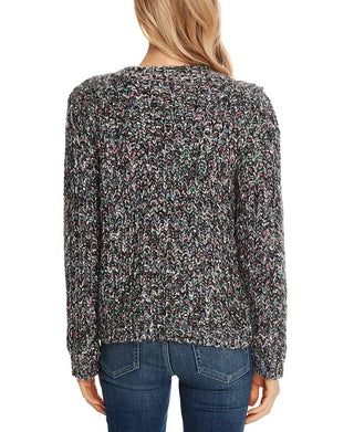 CeCe Women's Long Sleeve Multicolor Crew Neck Sweater Rich Black Grey Size Large