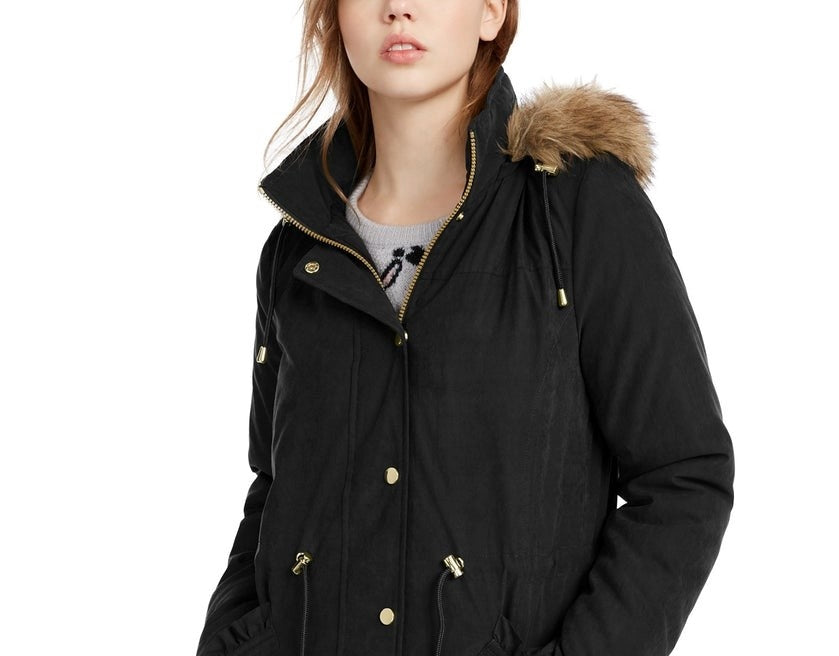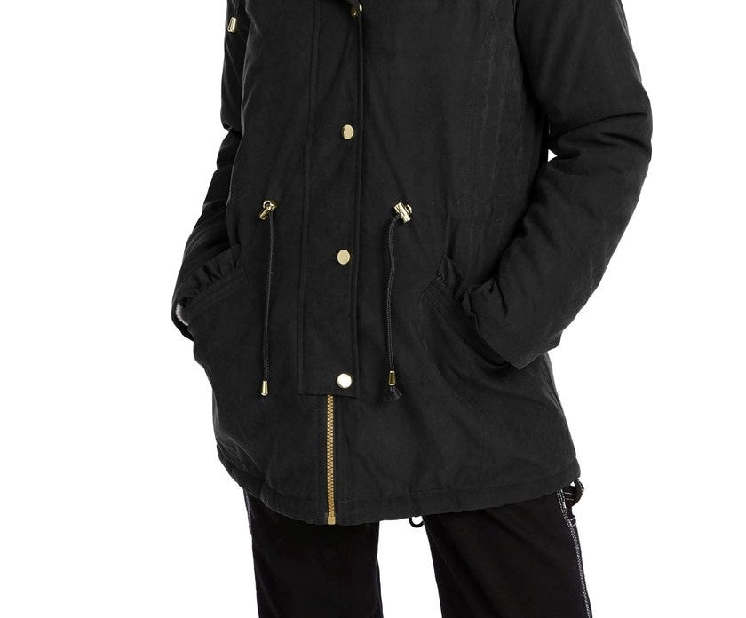 Celebrity Pink Juniors' Faux-Fur Trim Hooded Parka Coat Black Size X-Small