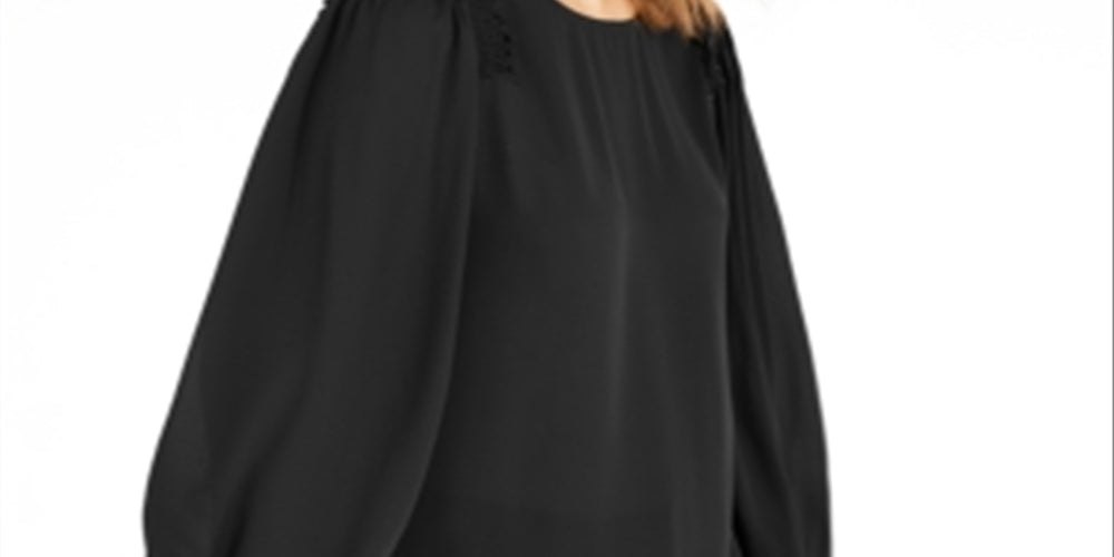 Alfani Women's Ruffled Scoop Neck Wear to Work Top Black Size Medium