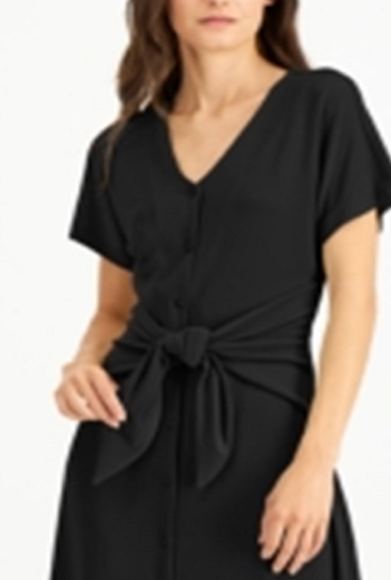 Alfani Women's Short Sleeve V Neck Below The Knee Dress Black Size X-Large