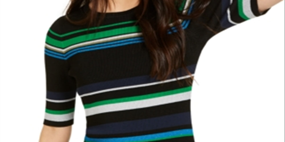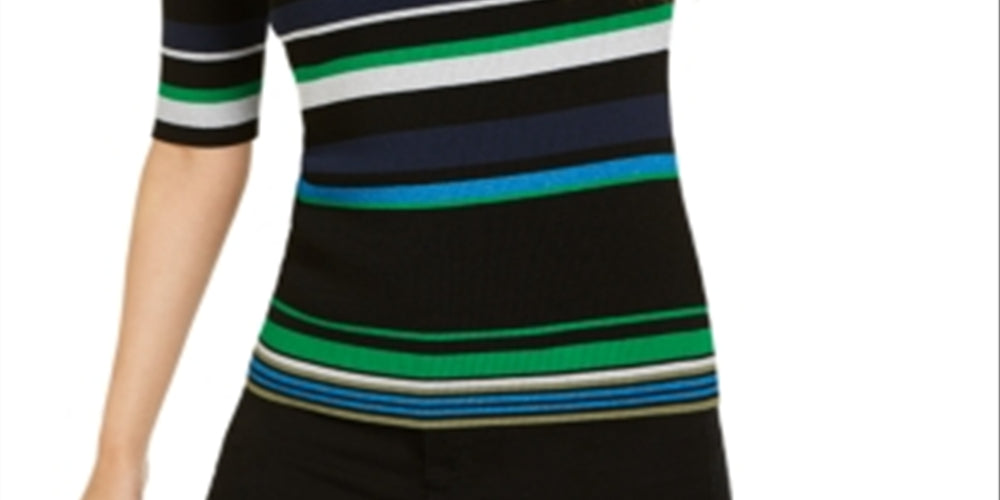 INC International Concepts Women's Metallic Striped Ribbed Sweater Black Size XS