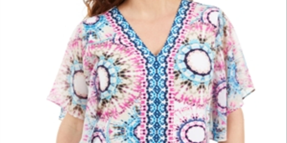 JM Collection Women's Printed Studded Top Blue Size X-Large