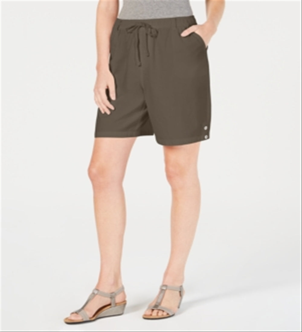 Karen Scott Women's Cotton Drawstring Shorts Brown Size Large