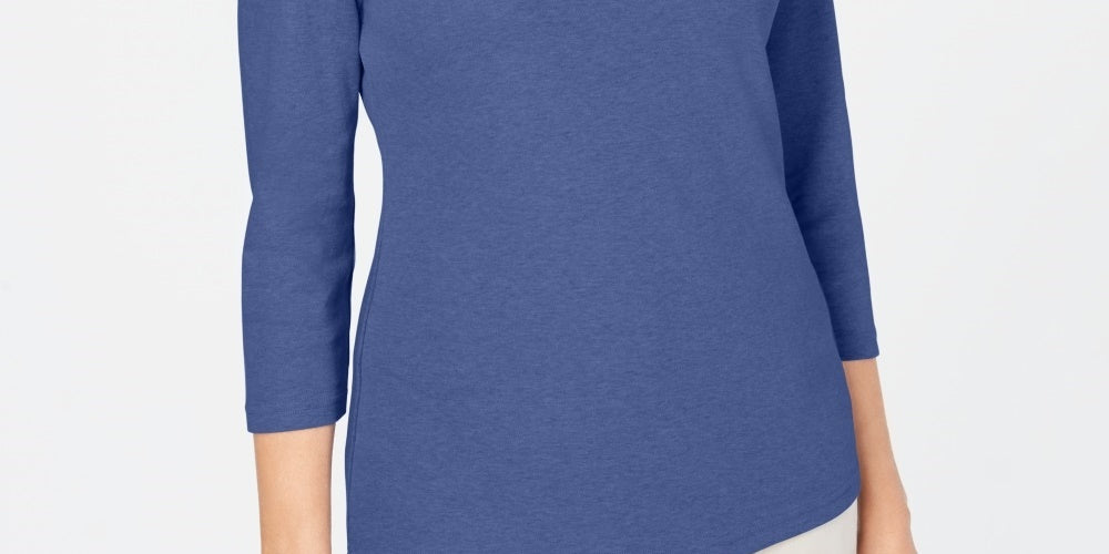Karen Scott Women's Cotton Scoop-Neck Top Blue Size Petite Medium