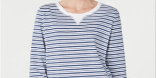 Karen Scott Women's Striped 3/4 Sleeve Sweatshirt Blue - White Size Petite S