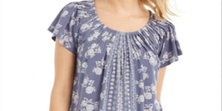 Style & Co Women's Bell Sleeve Jewel Neck Top Blue Size Petite Medium