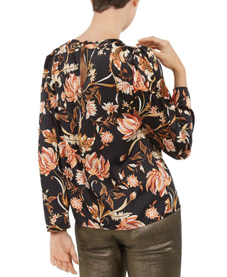 INC International Concepts Women's Floral Print Puff Sleeve Top Black Size Medium