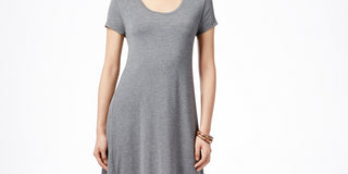 Style & Co Women's Short Sleeve A Line Dress Grey Size Large