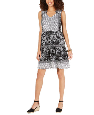 Style & Co Women's Petite Printed Peasant Dress Black Size Petite