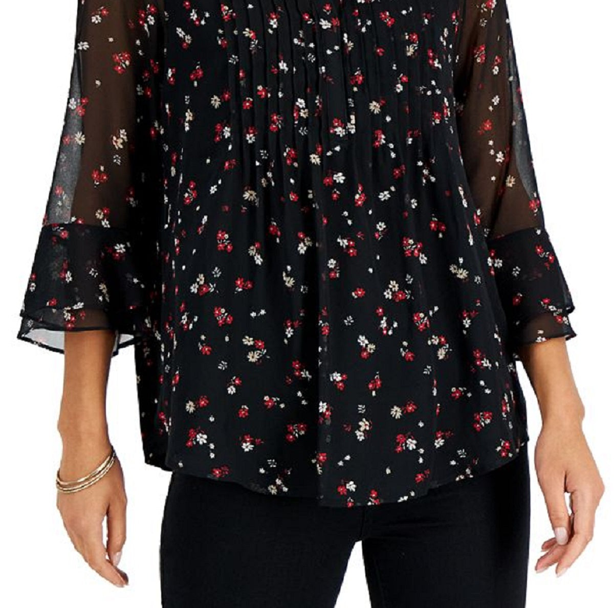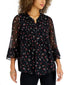 Charter Club Women's Printed Pintuck Top Black Size Petite X-Large
