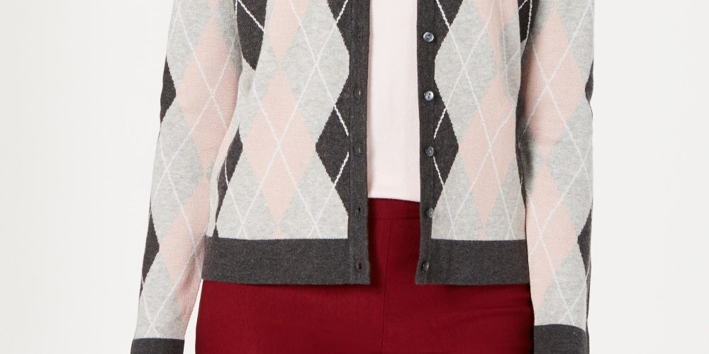 Charter Club Women's Argyle Knit Cardigan Gray Size XX-Large