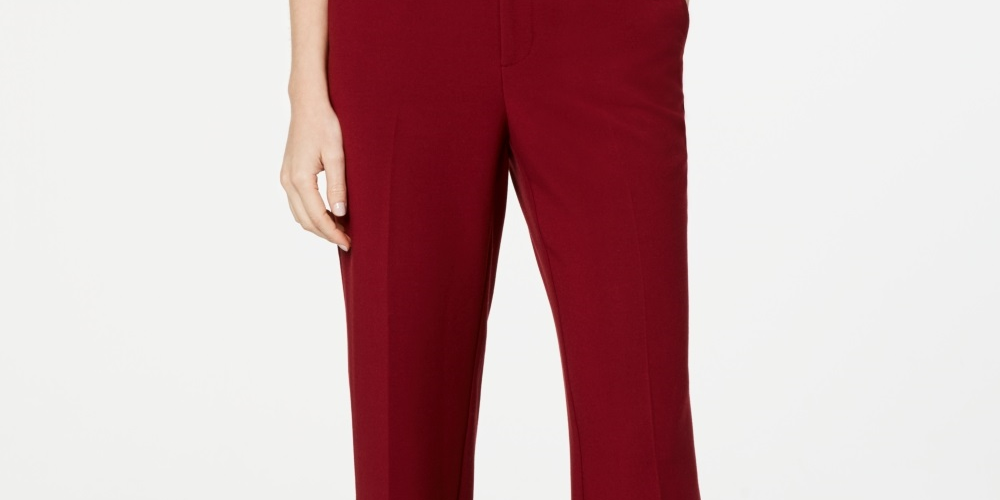Charter Club Women's Belted Tummy Control Trousers Wine Size 6
