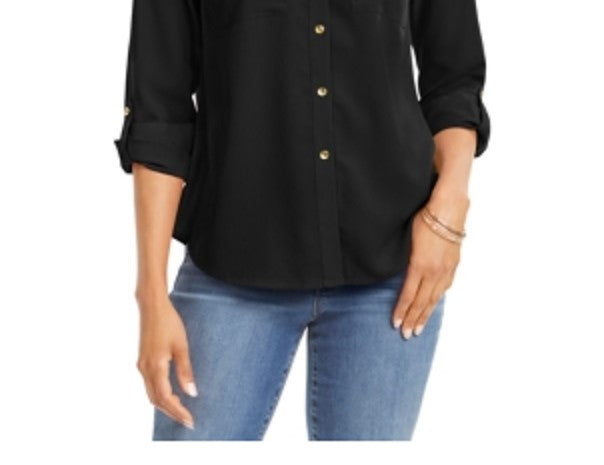 Charter Club Women s Button-Front Shirt (S Deep Black) Machine wash Long Sleeve Style; Button Down Size Type; Regular