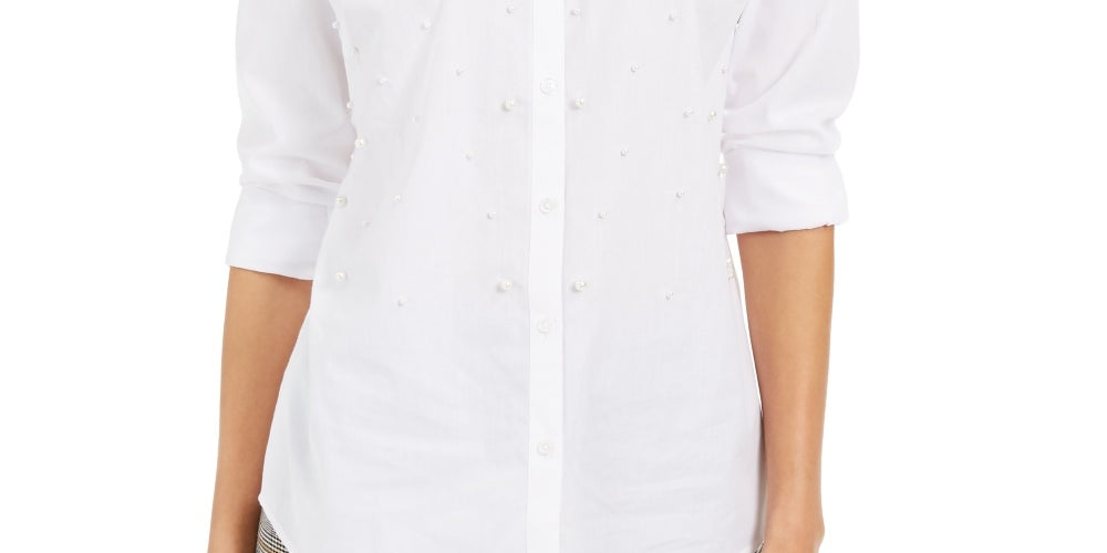 Charter Club Women's Faux Pearl Shirt White Size Large