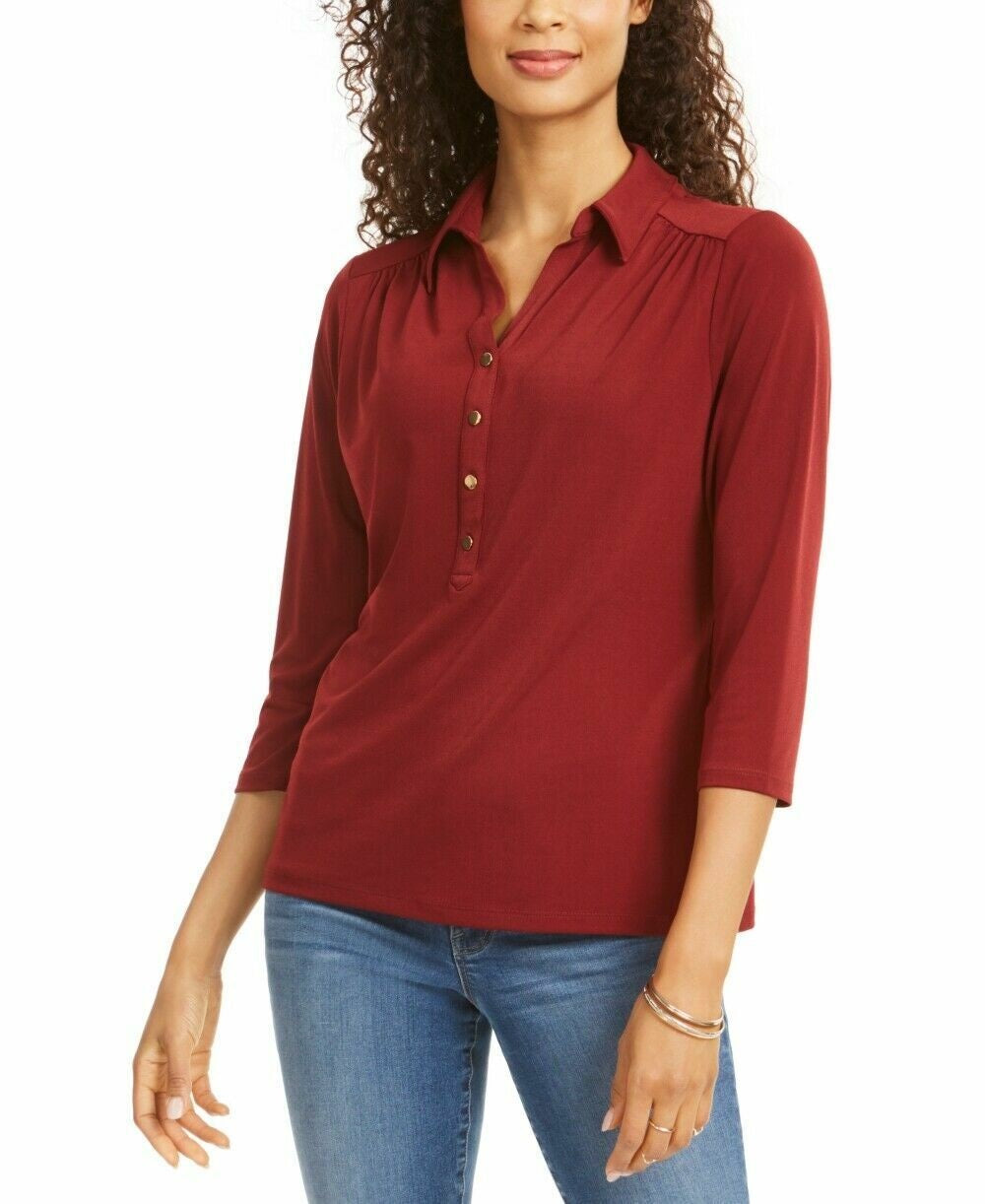 Charter Club Women's Knit Polo Shirt Carriage Wine Size Large