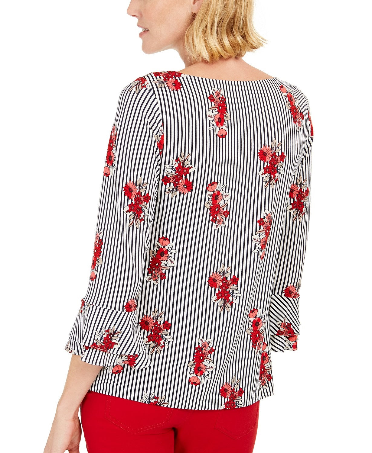 Charter Club Women's Printed Ruffled-Sleeve Top Gray Size XX-Large