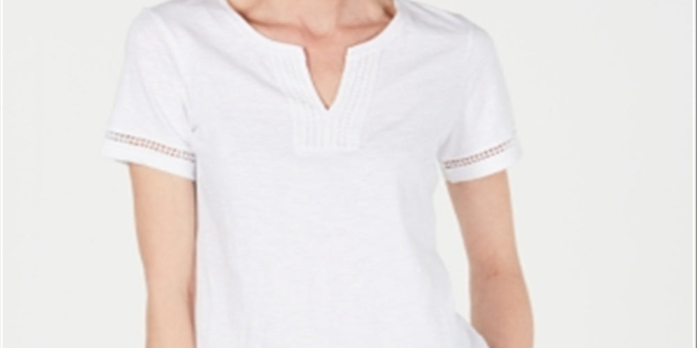 Charter Club Women's Split-Neck Cotton Top Bright White Size XXL