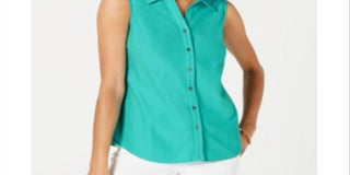 Charter Club Women's Pique Sleeveless Shirt Turquoise Stone Size 6