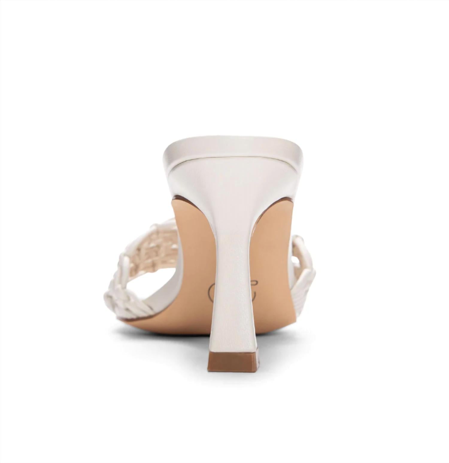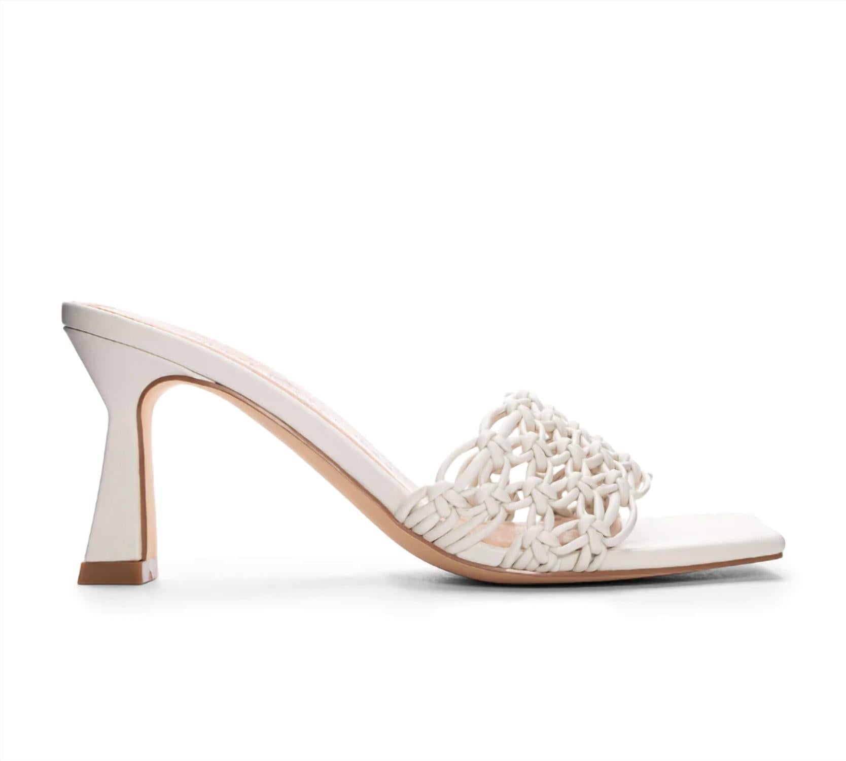 The perfect height for day to night. Step into elegance with the Women's Yazzie Woven Sandal by CHINESE LAUNDRY, featuring a chic cream color that's perfect for any occasion. These sandals sport a 3.25" high spool heel, enhancing your look with style and poise. Crafted from durable manmade materials, they include a delicately woven vamp strap and a reliable rubber sole with nonskid markings for safety.