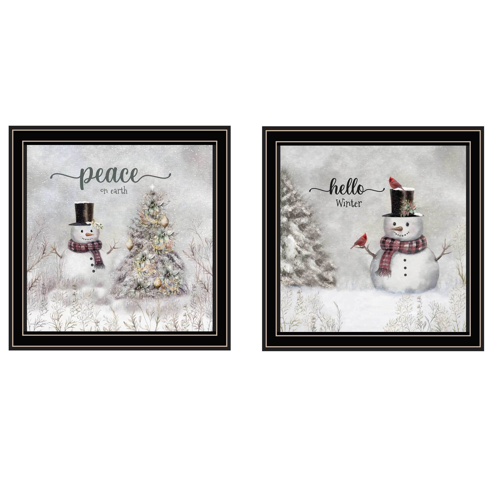 Trendy Decor 4U 2-Piece Vignette “Winter – Peace On Earth” Black Framed Wall Art by Robin-Lee Viera