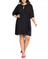 Approx. 39-1/4" long from center back neck to hem|Surplice neckline with keyhole; Fit & flare silhouette|Front button closure|Bell sleeves with pintucks at shoulders|Elastic at back waist; faux-wrap skirt with pintucks|Please note that this item has International Sizing. Please see US Sizing Conversions noted here that will appear on the merchandise tag when received: 14W= XS, 16W = S, 18W = M, 20W= L, 22W, = XL, 24W = XXL.